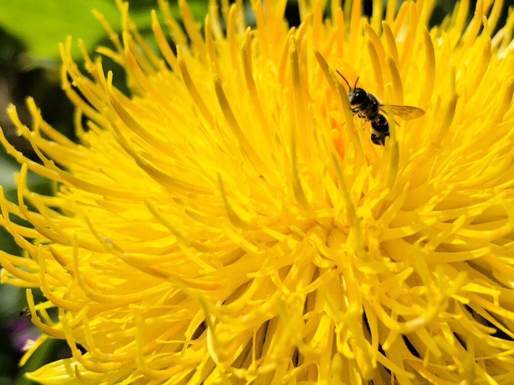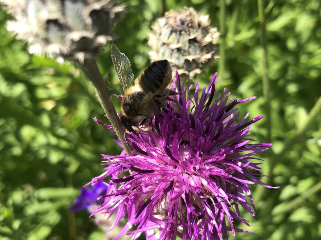 Knopurt er en dejlig kurvblomst, som mange bier elsker, og som stor bladskærerbi insisterer på at lave sine madpakker af.