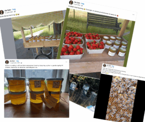 En gennemgang af Ida Dyhrs Facebook-side afslører en overflod af opslag om hendes honningbier, bistader, og vejbod med honningsalg: